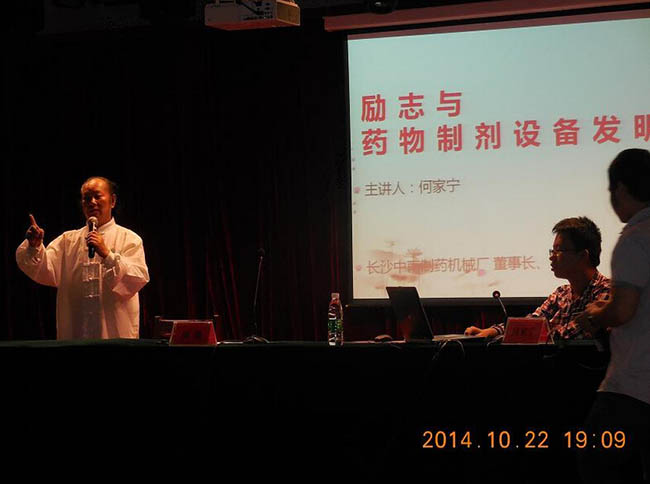 2014年10月22日,董事長(zhǎng)何家寧先生在湖南省食品藥品學(xué)院講學(xué)。題目是"勵(lì)志與藥物制劑設(shè)備發(fā)明"。學(xué)院甘院長(zhǎng),陳靜主任,中藥專業(yè)黃教授,胡文主老師,學(xué)生處張?zhí)庨L(zhǎng)等到場(chǎng),有多專業(yè)多年級(jí)學(xué)生參加。今年9月,學(xué)院向我廠購置一批制藥機(jī)械,經(jīng)陳靜主任,胡文主老師試機(jī)驗(yàn)收合格。
