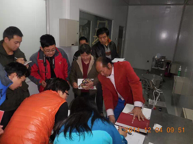 2014年12月4日,中國科學院國家納米研究中心,由甘雅玲研究員(女,納米科學家) 領隊,衛生部,國家食品藥品監督局領導,納米研究中心和相關學科研究所負責人參加,對我廠提供的西林瓶凍干生產線和小型片劑生產線進行實際操作驗收,非常滿意。這是我的專利,技術得到國家高級別科研單位認可。