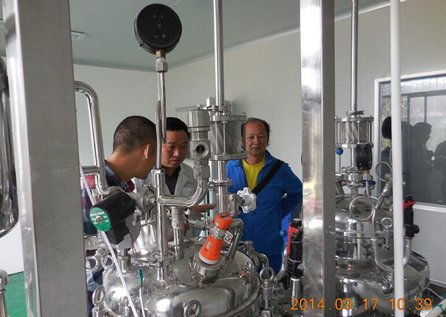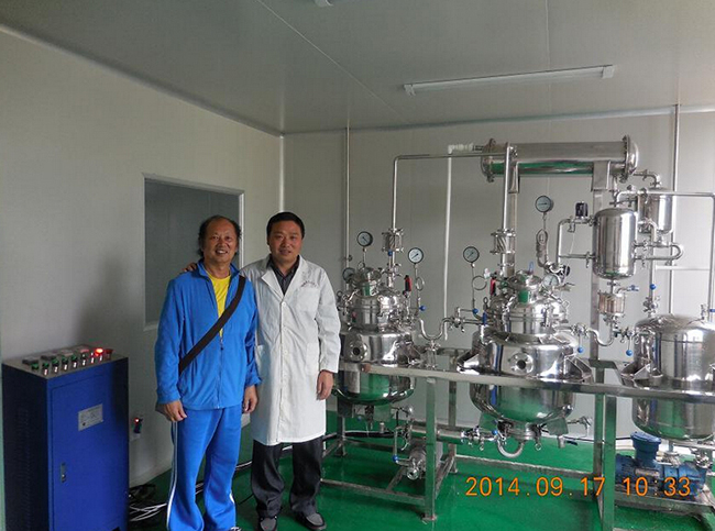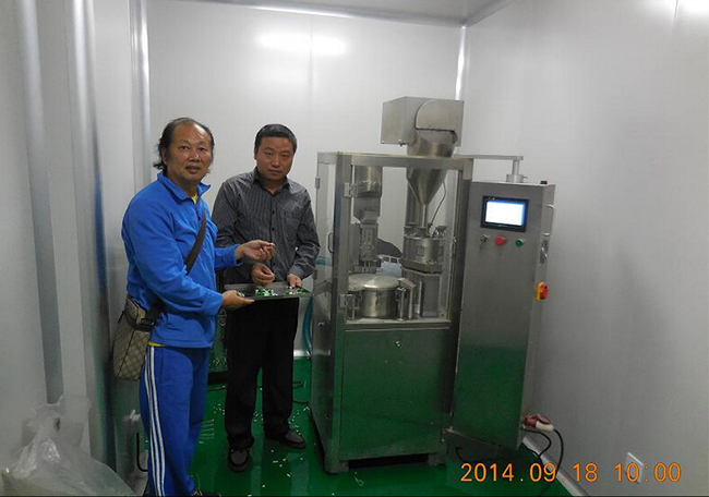 2014年9月17日,湖南省食品藥品學(xué)院購買我廠ZNTD-50型提取濃縮液機(jī)組、QTB全自動(dòng)膠囊充填機(jī)及其他設(shè)備,圖為該院胡文主老師與董事長何家寧先生在驗(yàn)收現(xiàn)場(chǎng)。