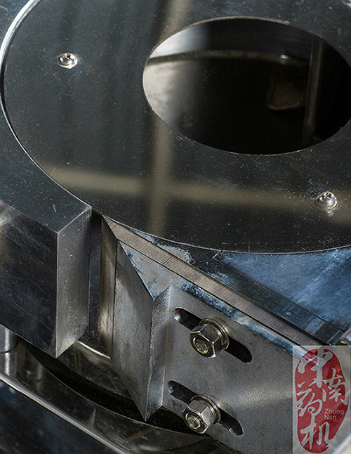 物料從高速旋轉的轉盤中心孔投入,在離心力的作用下滑向外圈內壁作勻速圓周運動,當物料經過裝在切向的固定刀片時,被切成片狀。用于根莖、果實、種子類藥材和塊狀農副產品切片加工。