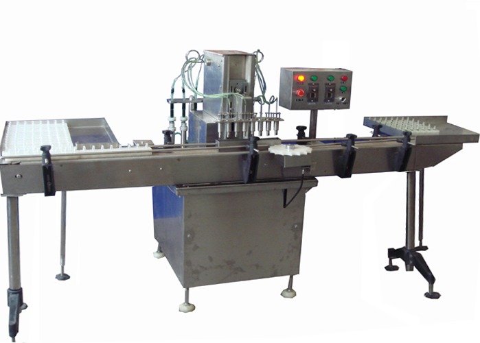 多年來,特小口瓶液體灌裝均采用負壓式。由于國產模制瓶容積差異大,相應裝量差異也大;同時負壓式灌裝時須將瓶口倒置浸入液體內,造成瓶頸瓶身粘液污染,達不到GMP要求,對此制藥廠家頭痛又無可奈何。我廠成功解決了以上難題,并迅速成為全國特小口異形瓶灌裝機市場占有量較大的廠家。該機自動進瓶,經定位器二次智能定位,確保灌裝噴管準確插入瓶內,噴管在灌裝液體時慢慢上升,完全消除泡沫。本機由于采用了扶助式定位裝置,對于不能直立的各種異形瓶尤為適用。本機灌裝精度達±0.5%,瓶口無粘液污染,完全符合GMP要求。