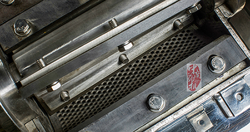 物料由進料斗送進粉碎室,經刀刃和刀座的沖擊,旋轉刀和固刀同時剪切粉碎,由于受到旋轉離心力的作用,物料自動流向出口處,該機是采用臥式粉碎結構,不受物料粘度,硬度,軟度等的限制,對任何物料都能起到較好的粉碎效果。