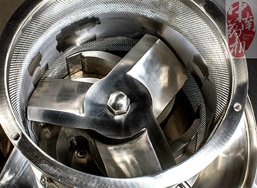 本機(jī)采用行星減速機(jī)構(gòu),通過(guò)電機(jī)變頻,實(shí)現(xiàn)無(wú)級(jí)變速,各種物料均能適應(yīng)。篩筒和制粒刀各自旋轉(zhuǎn)并相對(duì)運(yùn)動(dòng)。通過(guò)篩筒與制粒刀的旋搓作用,將物料擠出篩筒網(wǎng)孔。成圓柱條狀物料,經(jīng)篩筒外的切割切割下,成為大小均勻,長(zhǎng)度一致的顆粒,(顆粒的大小由篩筒網(wǎng)孔直徑大小決定,長(zhǎng)度由切割刀的把數(shù)決定)而且所制的顆粒不易松散.